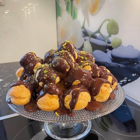 پروفیترول نون خامه ای های کوچولو با کرم خوشمزه و یک سس عالی.