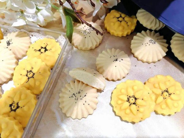 میتونید روی شیرینی ها تخم خرفه بپاشید یا با خلال پسته تزئین کنید. سینی فر را در فر از قبل گرم شده با دمای ۱۵۵ درجه به مدت ۲۰ دقیقه قرار بدین.